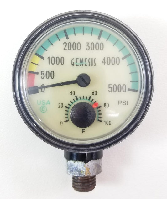 Genesis / Sherwood 5000 PSI SPG Submersible Scuba Pressure Gauge w Thermometer